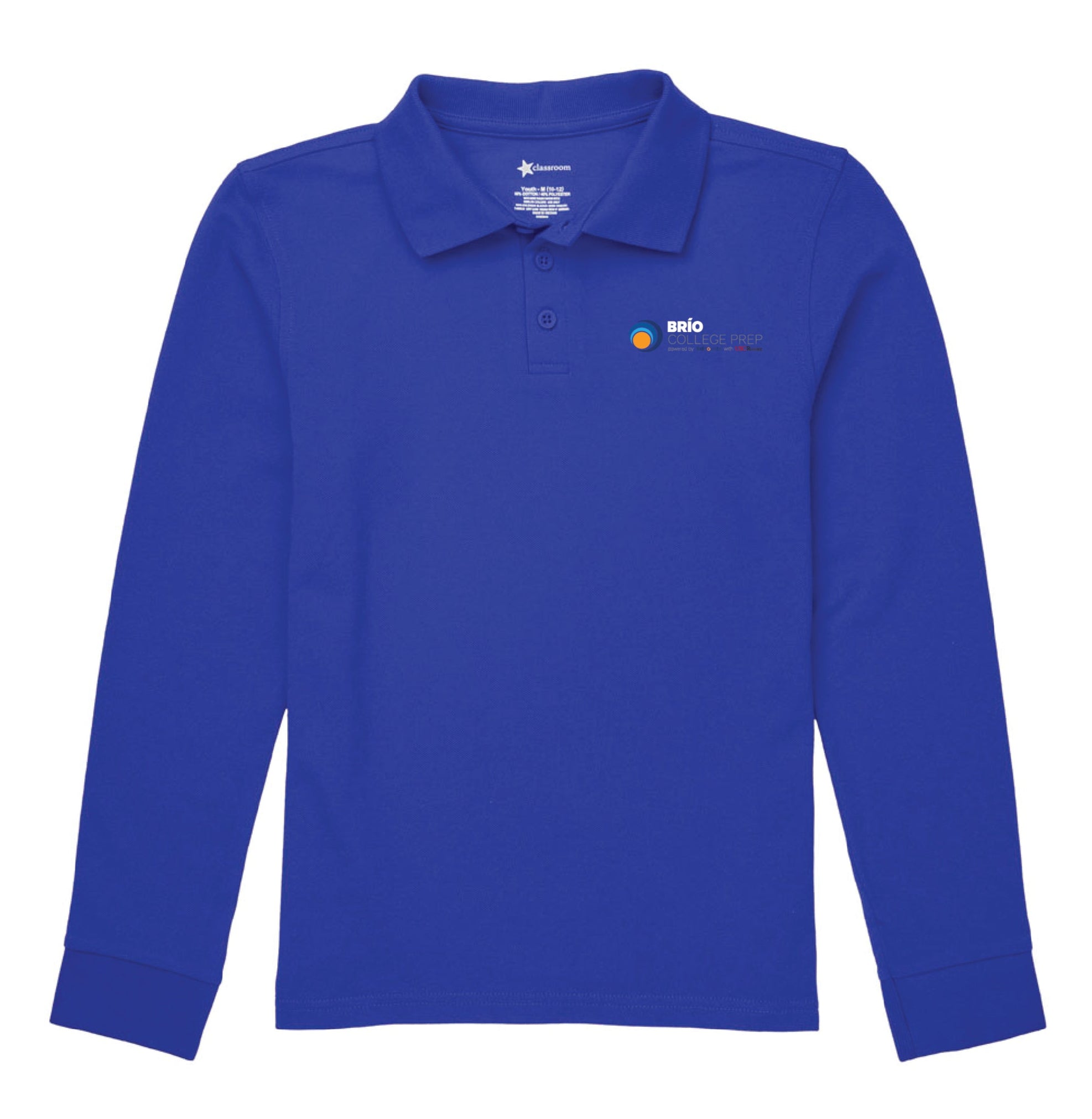 60/40 blend and has a regular unisex fit. Long Sleeve Polo comes with embroidered logo.